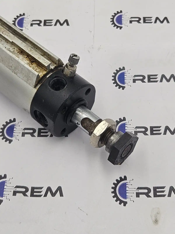 Cilindro pneumatico usato con corsa 325 mm, stelo Ø12 mm, filetto M10x1.25 e freno regolabile. Attacchi G1/8″, testato e funzionante.